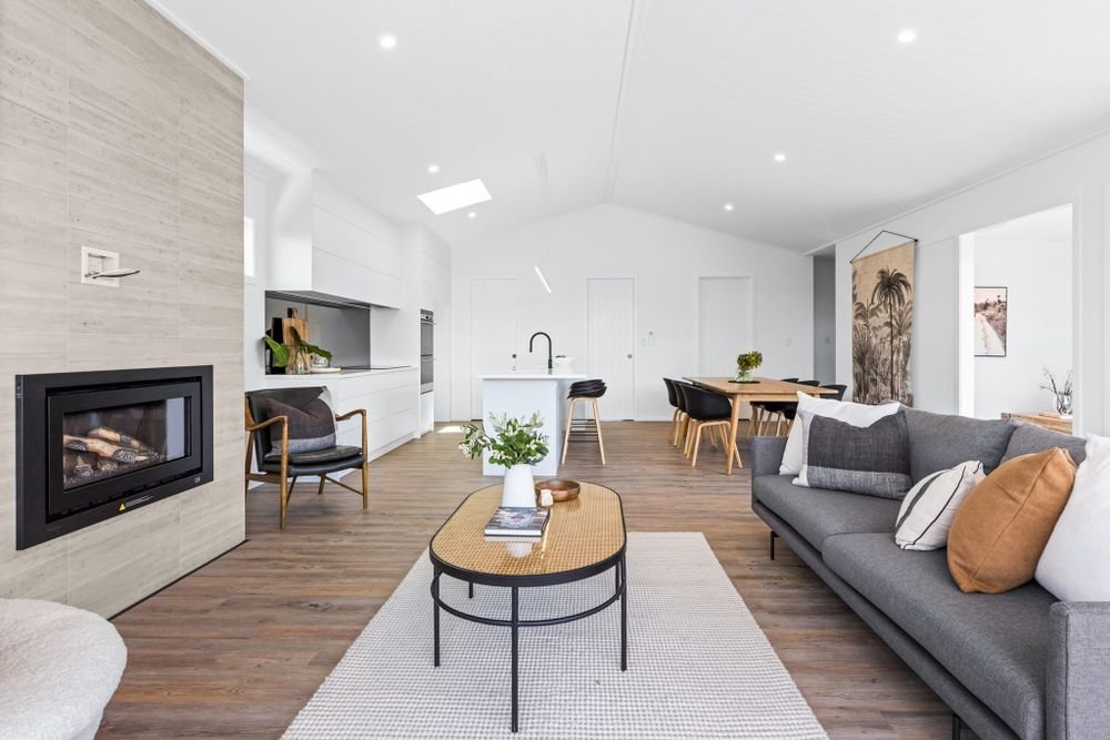 A spec build designed for clients in a new Hawkes Bay subdivision, Rangitaiki features clean lines and a refined material palette of plaster and vertical shiplap cedar. The home’s scissor truss roof creates a sense of spaciousness, while the covered outdoor area extends the roof line seamlessly, blurring the boundary between indoor and outdoor living.
